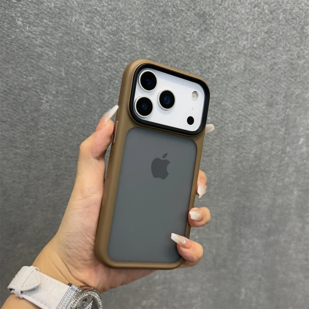 New Metal Buttons Skin Feel Orange Shield Matte Transparent Phone Case For iPhone 17 Pro Max 17 Air 17 Pro 17 Shockproof Cover